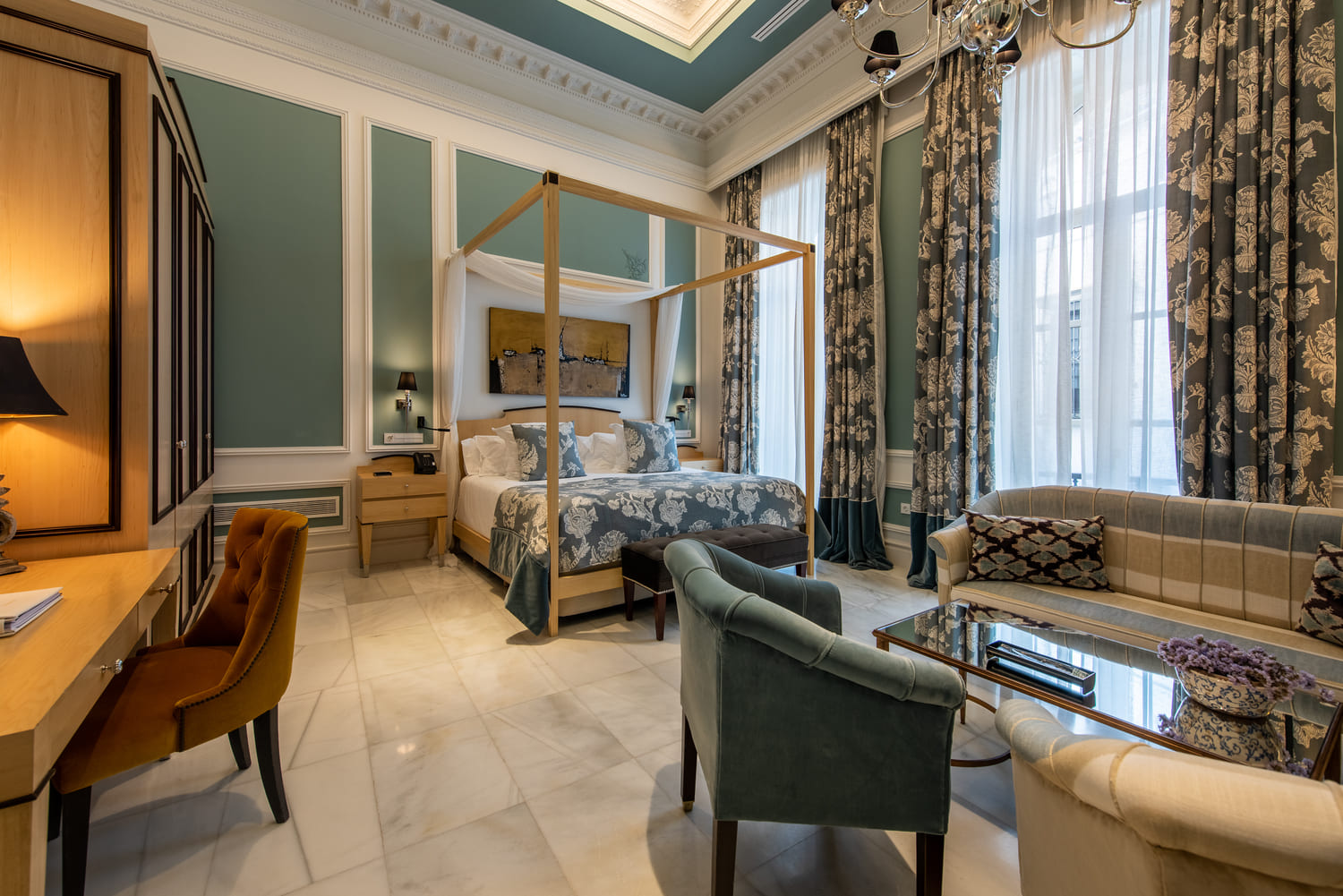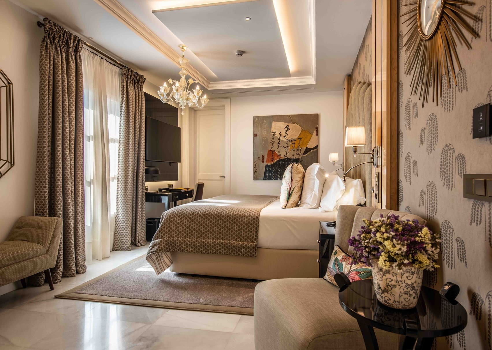 Las habitaciones del Hotel Casa Palacio María Luisa destacan por su elegancia clásica contemporánea y un cuidado excepcional en cada detalle. Con categorías Premium, Deluxe y exclusivas Suites, ofrecen amplitud, luz natural y un ambiente sofisticado.