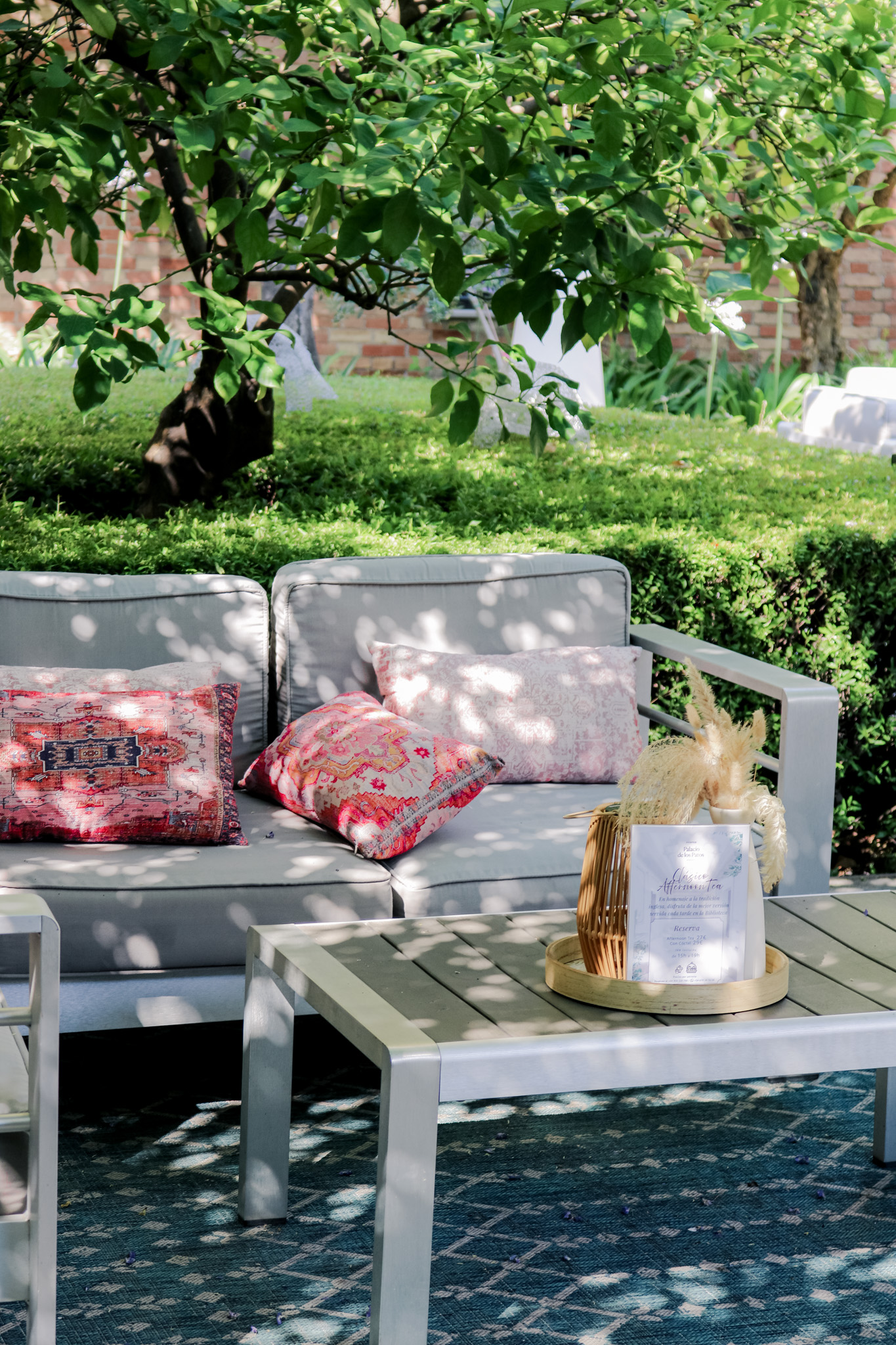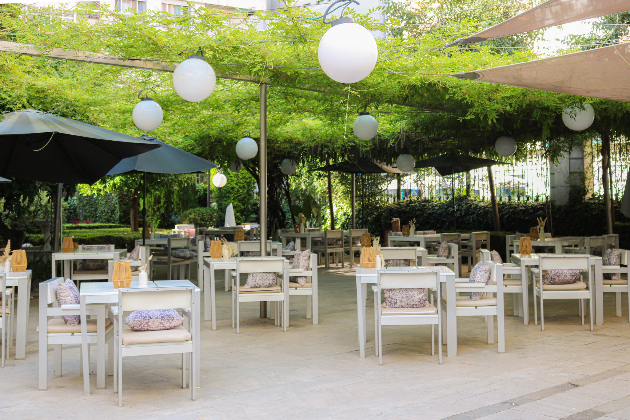 Con 600 m², la terraza y el jardín están impregnados con el exquisito aroma a azahar y acompañada por el relajante murmullo de las fuentes árabes, y ofrecen capacidad para albergar hasta 150 personas en formato cóctel.