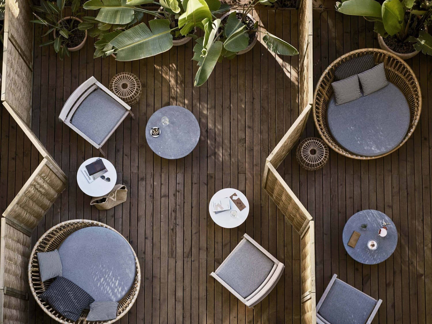 Un oasis exterior lleno de vegetación y bañado en luz natural idóneo para brunches, copas de bienvenida, comidas con servicio en mesa y presentaciones. Se puede combinar con El Estudio o con The Greenhouse para eventos más amplios.