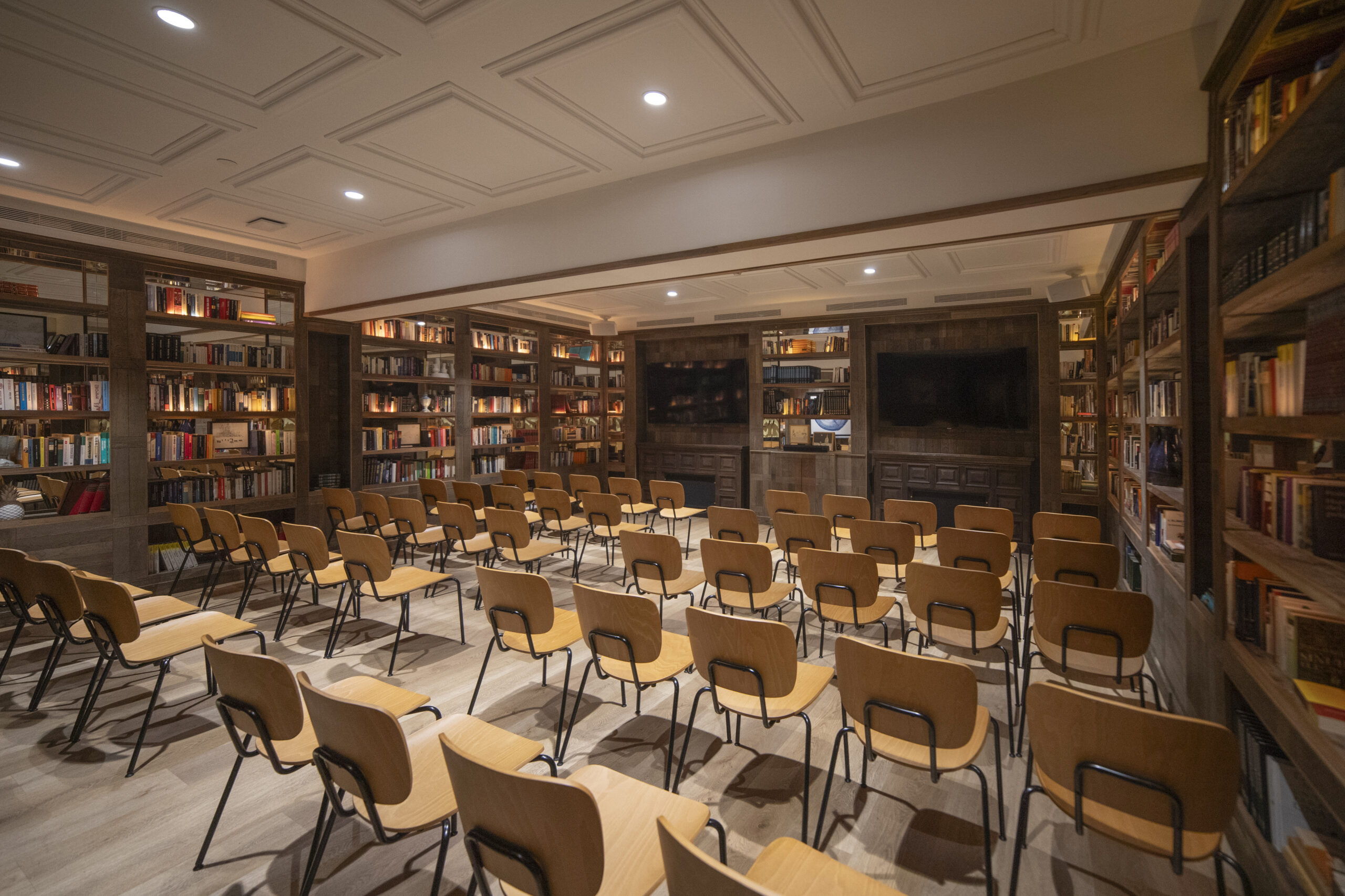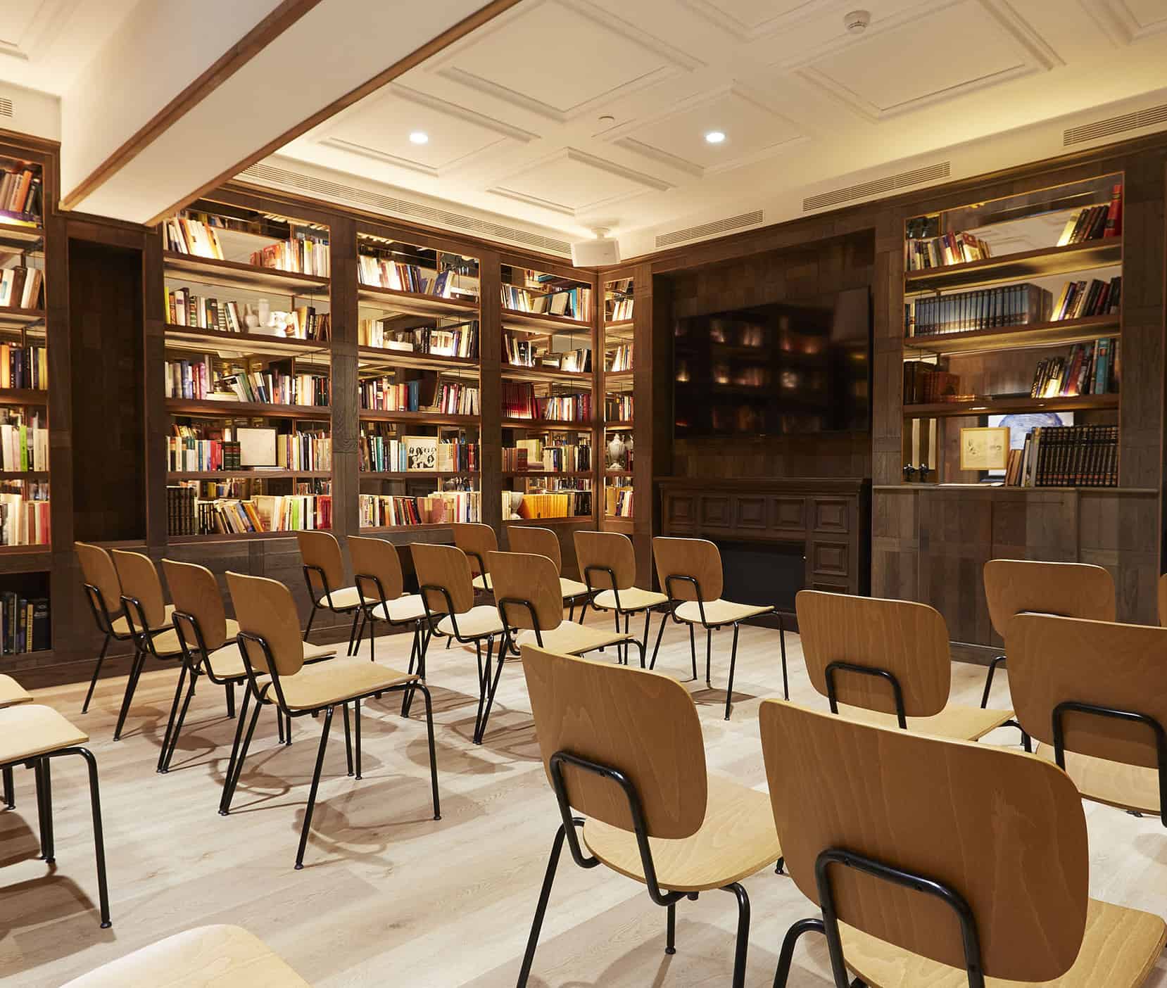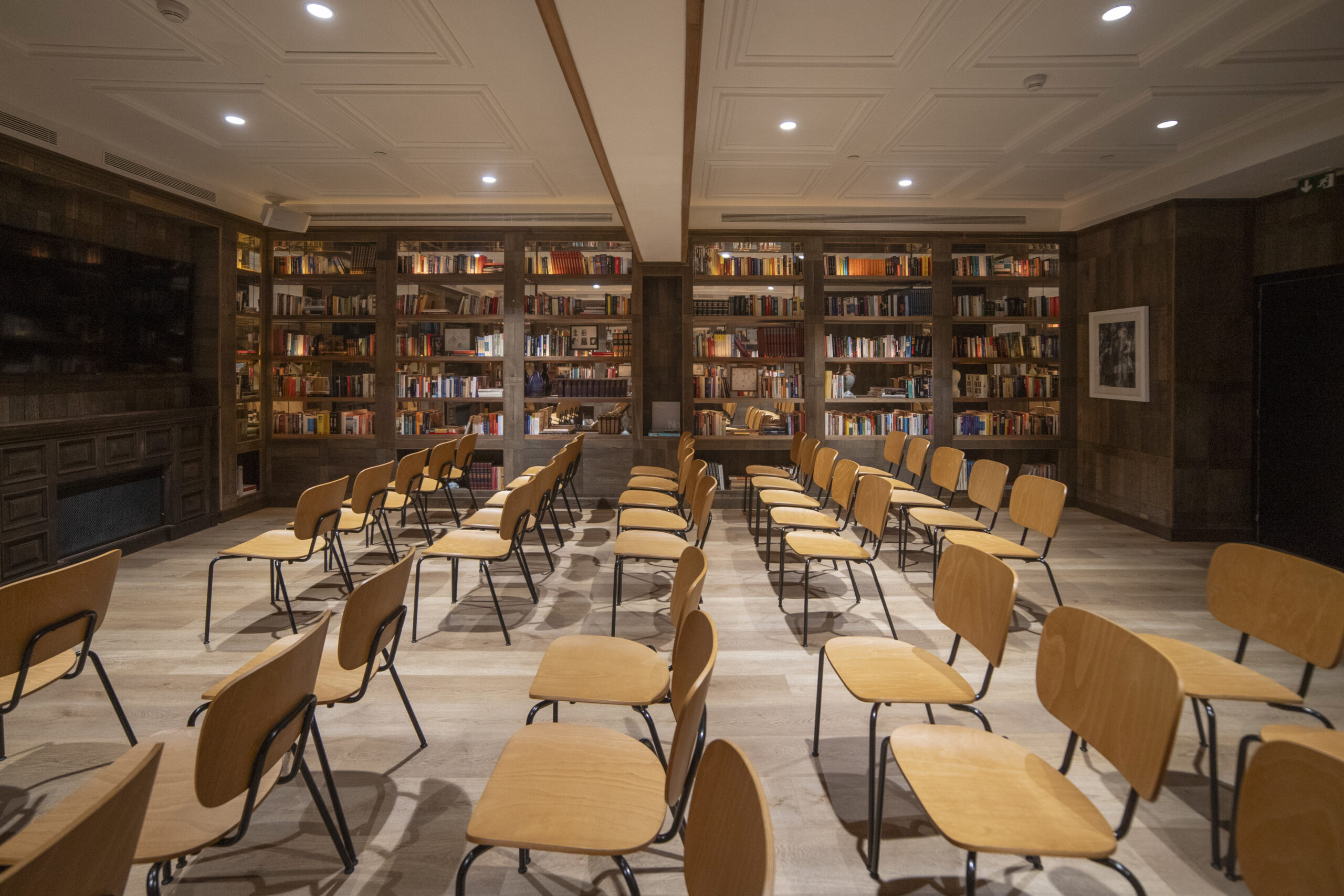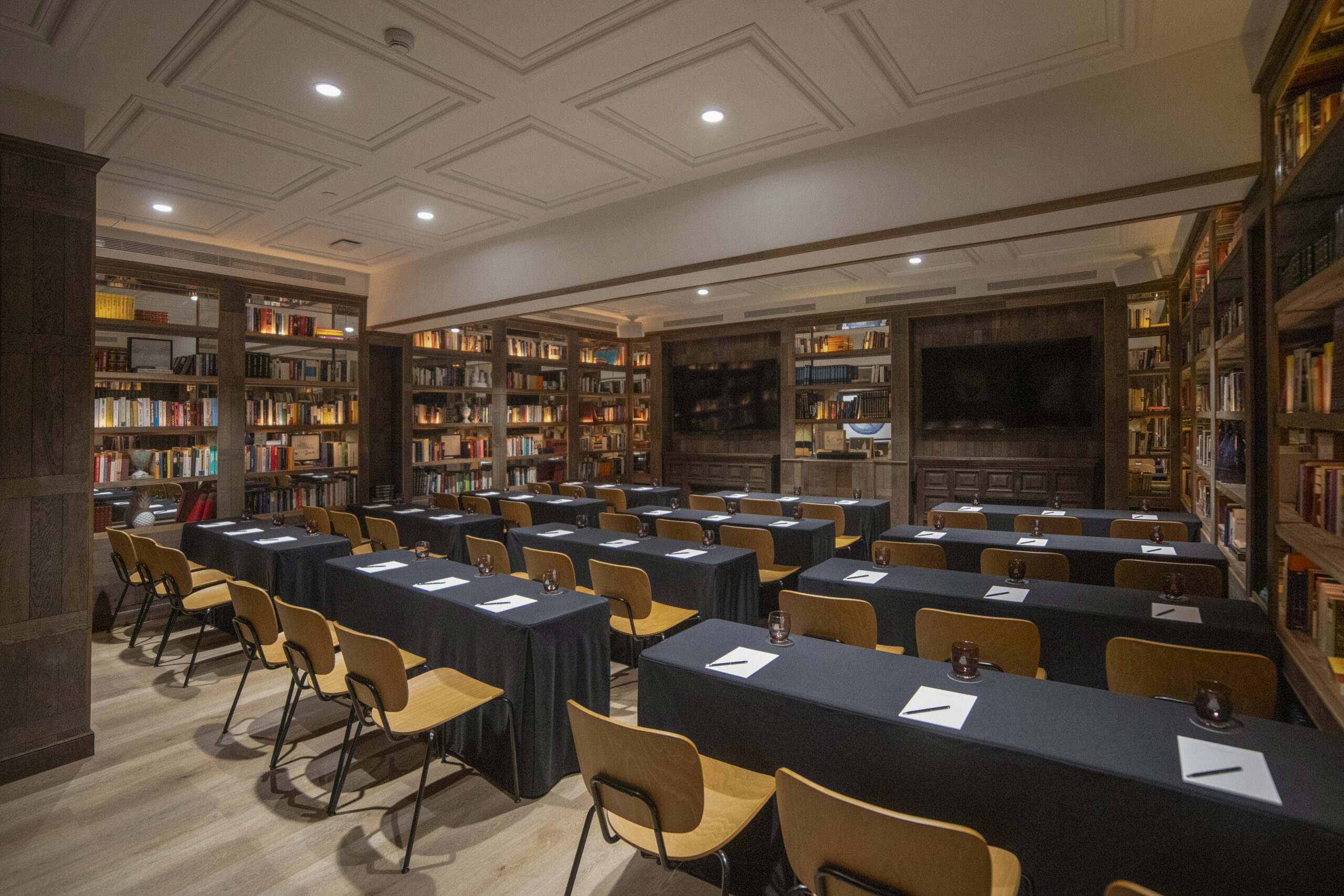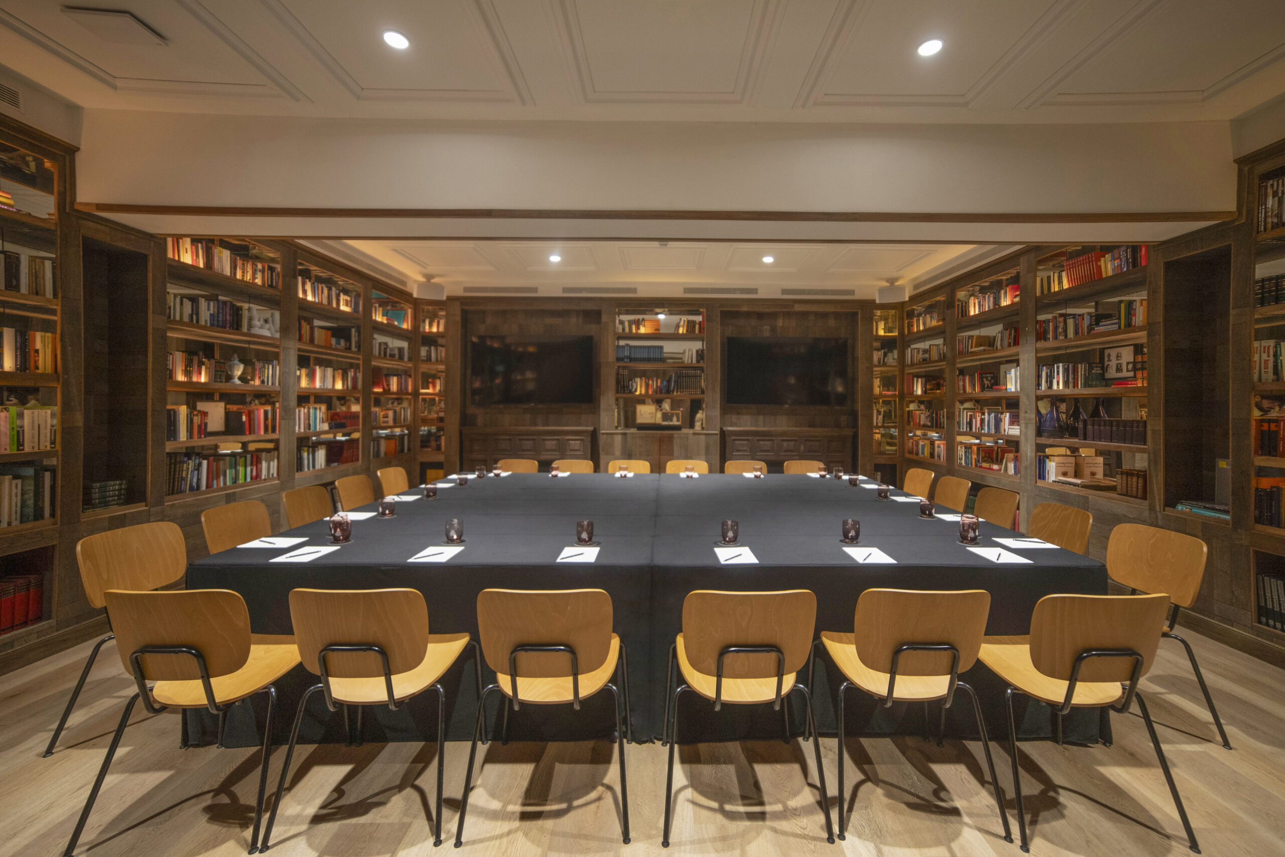 La sala de reuniones «La Biblioteca» es un espacio diseñado por Lázaro Rosa-Violán Studio, perfecto para celebrar reuniones, cenas o eventos, totalmente equipado con sistema de doble proyección y una acústica perfecta.